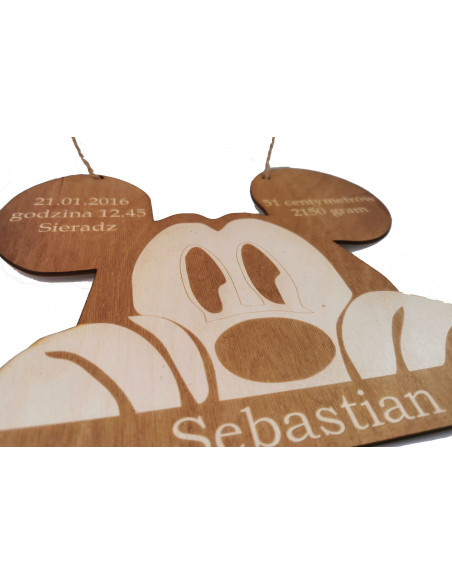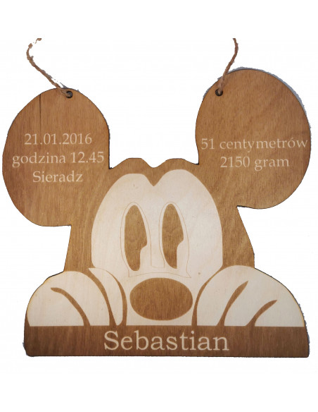 Wyjątkowa pamiątka i jednocześnie piękna dekoracja. Myszka metryczka drewniana trwała dekoracja