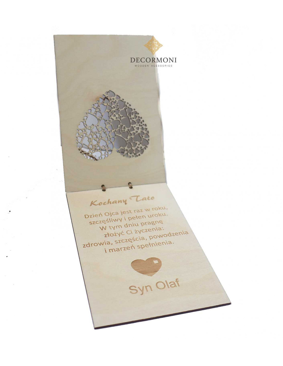 Podaruj swojemu tacie nietuzinkową drewnianą kartę, na której możesz zawrzeć swoje życzenia dla Ojca.